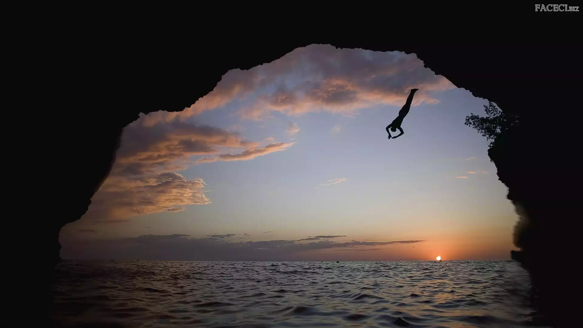 Wody, Zachód, Morze, Skok, Do, Skała, Słońca - faceci.biz